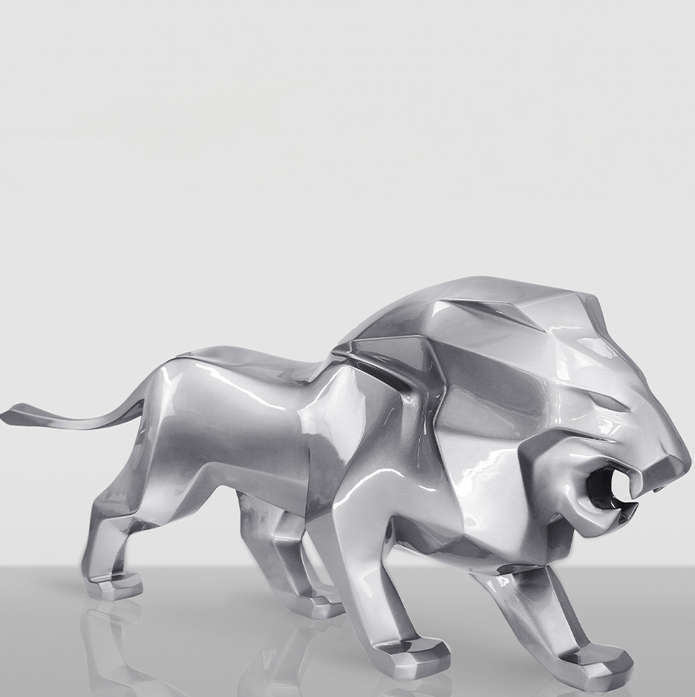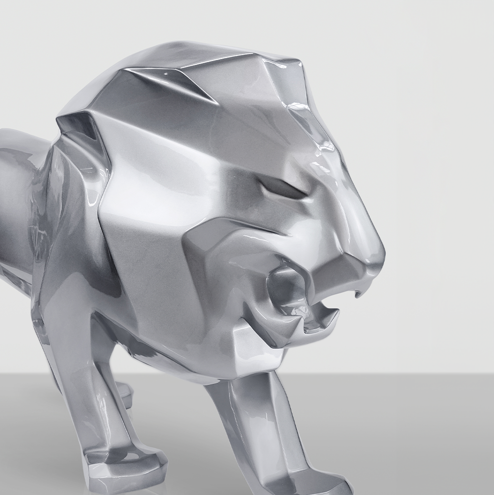 - Nowoczesny Design: “Srebrny Lew” odzwierciedla nowoczesne podejście do sztuki rzeźbiarskiej, gdzie klasyczne tematy są przetwarzane z geometryczną precyzją. Każda linia i kształt są starannie zaprojektowane, aby oddać majestatyczną posturę lwa, jednocześnie zachowując styl minimalistyczny i nowoczesny.