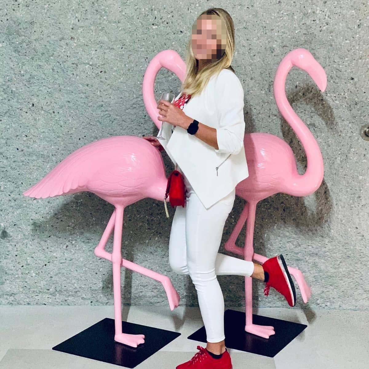 Figura Flaming ma imponujące wymiary: 155cm wysokości, 100cm długości, 32cm szerokości, z metalową podstawą 50x50cm. To imponujący element wystroju, który z pewnością przyciągnie uwagę i podniesie prestiż Twojego biznesu.