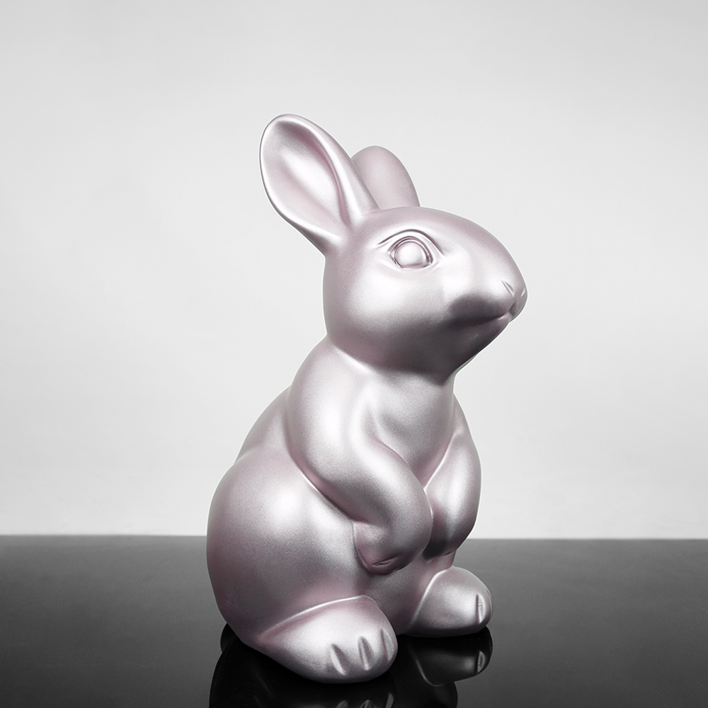 Model ten, o wysokości 45 cm, prezentuje się niezwykle efektownie dzięki swojemu subtelnemu pudrowemu różowi, który wprowadza do wnętrza ciepło i harmonię. Delikatny kolor i gładka powierzchnia królika sprawiają, że pasuje on do różnorodnych aranżacji, zarówno tych nowoczesnych, jak i bardziej klasycznych.