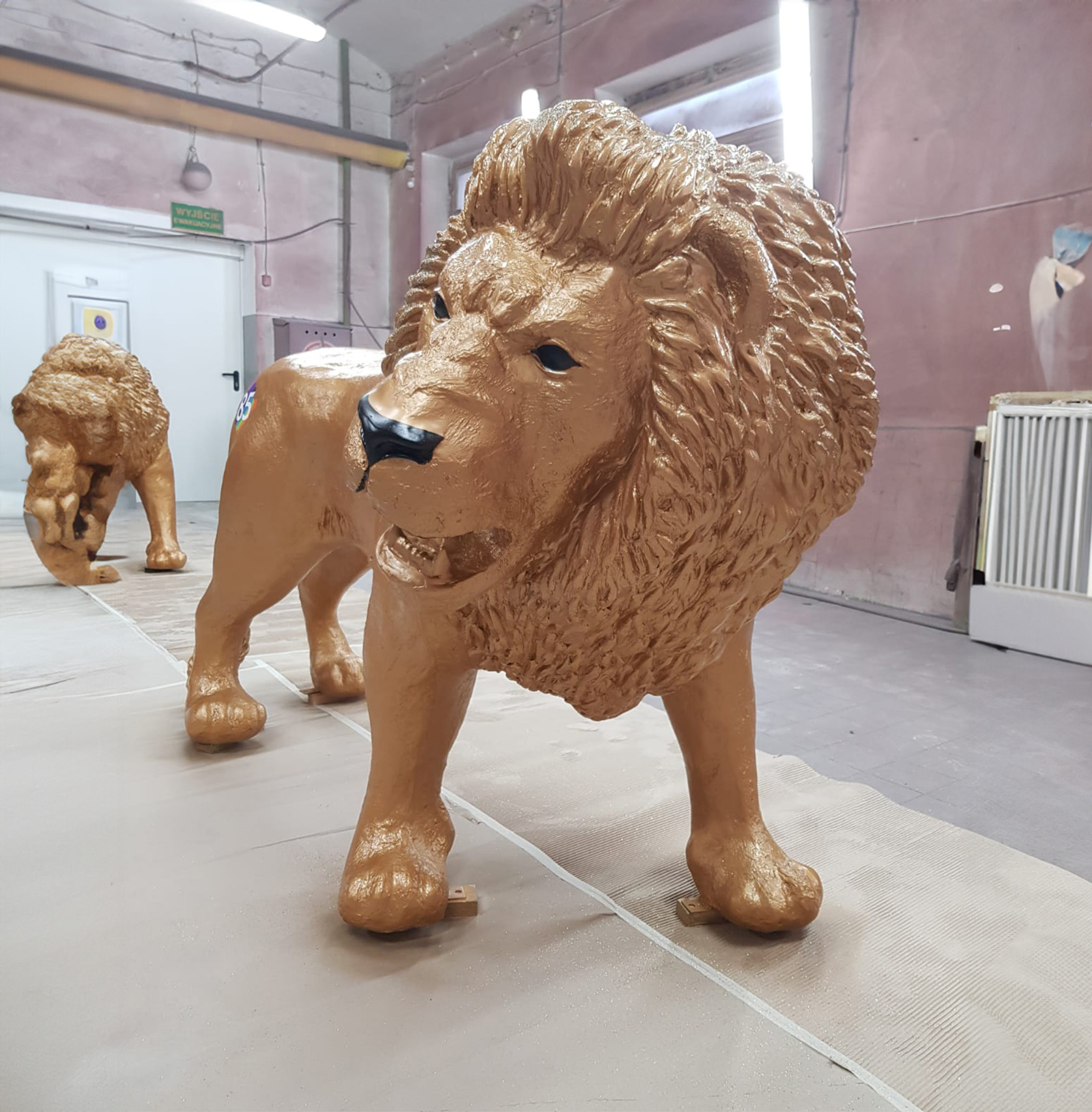 Figura lew naturalnej wielkości doskonale sprawdzi się jako dekoracja lub reklama zarówno wewnątrz, jak i na zewnątrz. Może być wykorzystana do wyposażenia parku zabaw, eventów, wystaw sztuki, galerii handlowych czy jako element wystrój wnętrz. Możliwości zastosowania są praktycznie nieograniczone!