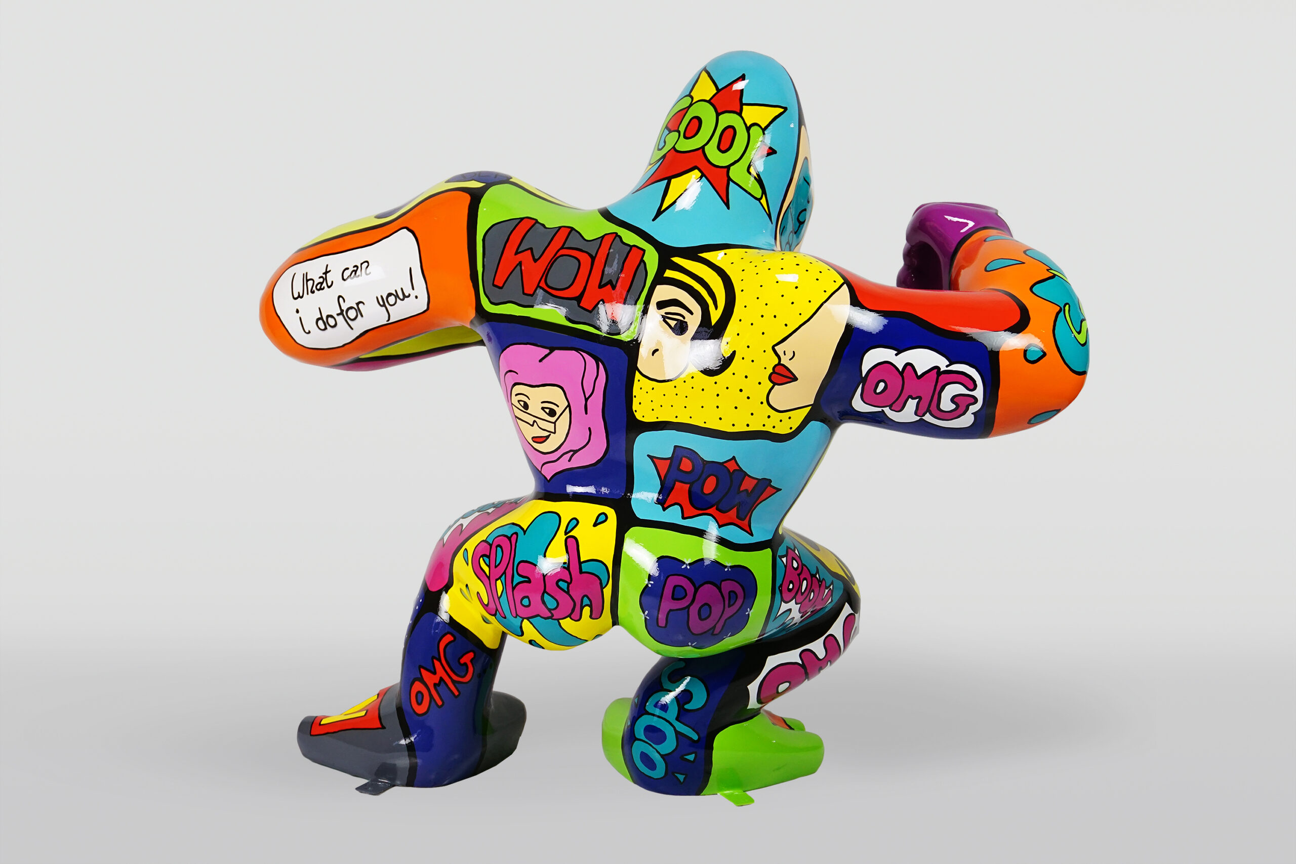 Duży goryl XXL malowany ręcznie w wersji Pop-Art – komiks