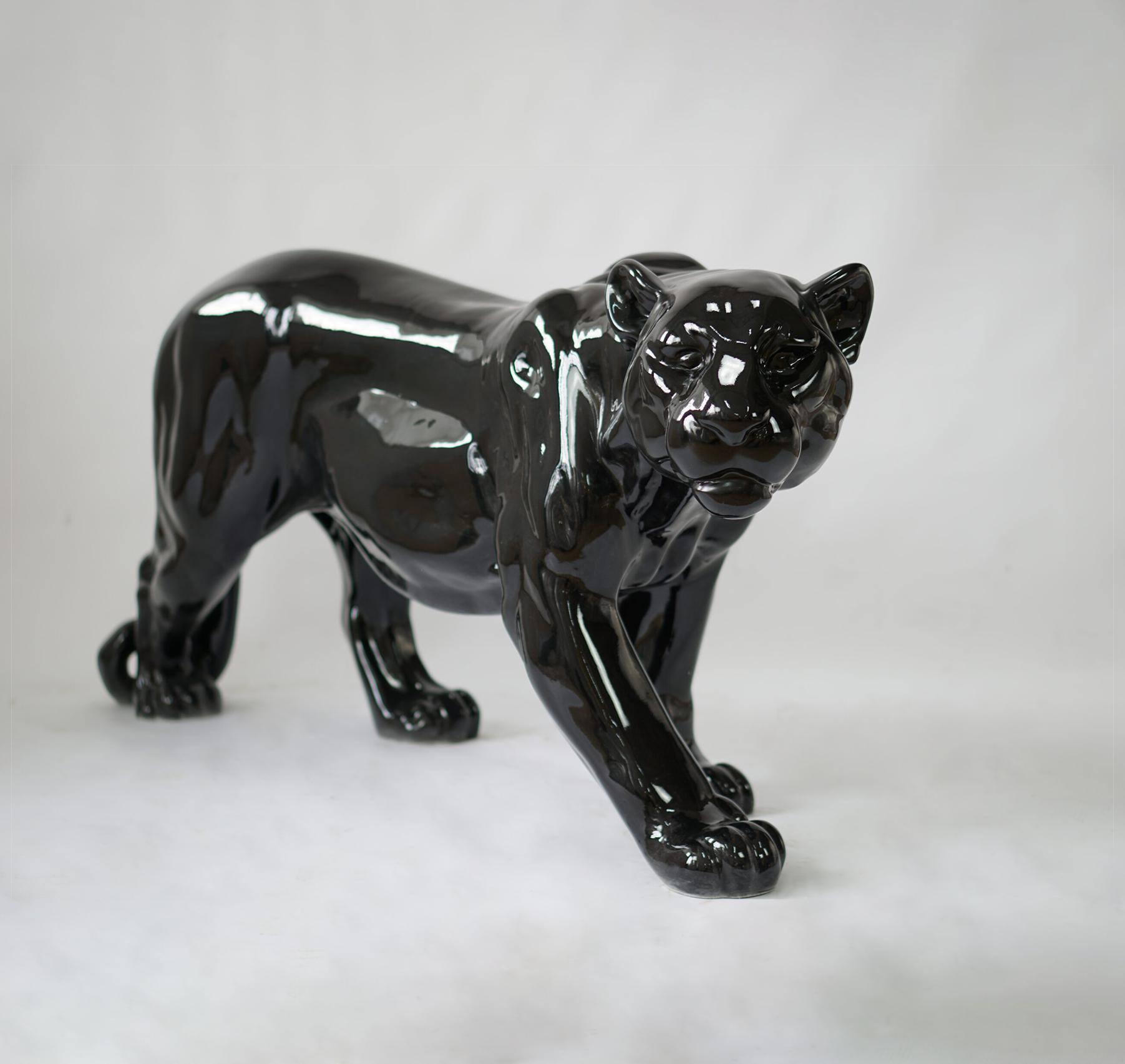 Z każdym krokiem, jaki wydaje się podejmować czarna pantera, rzeźba ta wyraża odwagę i niezłomność. Jej połyskująca powierzchnia nie tylko oddaje każdy muskuł i kształt drapieżnika, ale także odbija światło, tworząc grę cieni i refleksów, która dodaje głębi i charakteru całej figurze.