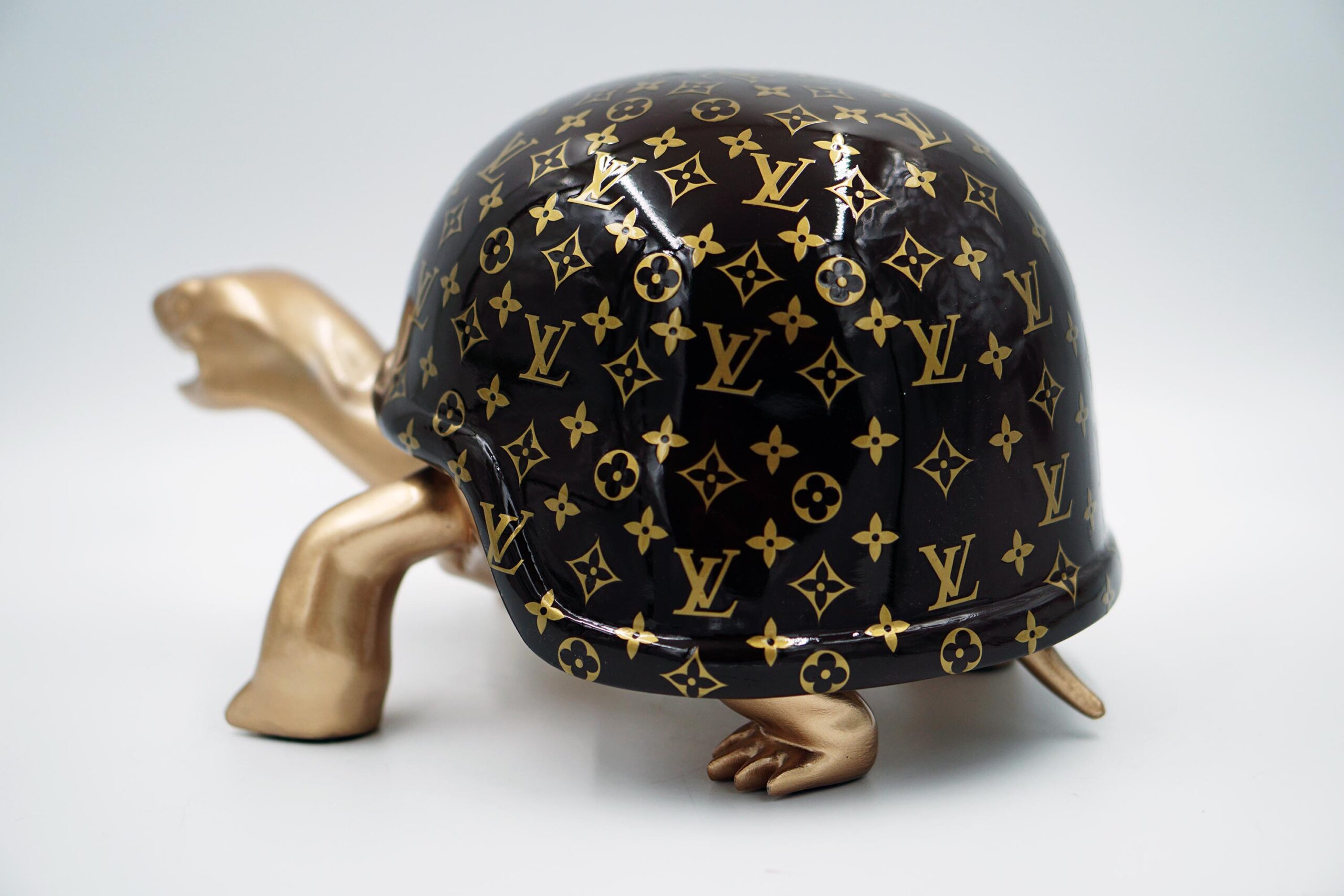 Figura 3D – Żółw w kasku ze złotym monogramem L